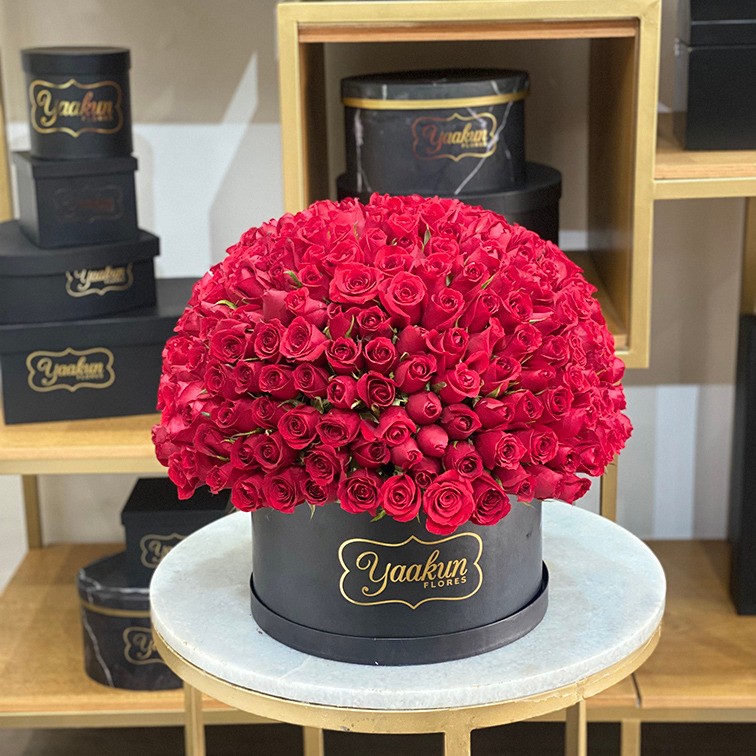 Elegante diseño de 300 rosas incorporadas a la perfección en caja negra