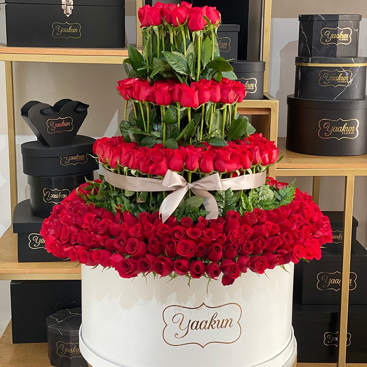 Espectacular diseño floral en caja con aproximadamente 400 rosas rojas.
