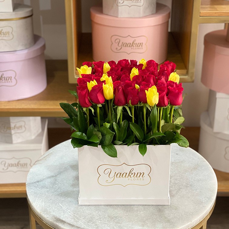Yaakun Flores te ofrece CALIDAD de exportación en cada uno de sus productos, la CANTIDAD puede variar dependiendo del tamaño de la misma; esta es aproximada. La VARIEDAD de flores y follajes pueden variar dependiendo de la temporada y existencia de los mismos, el COLOR cambia un poco dependiendo de la temporada y disponibilidad. En caso de que la flor sea pintada, es más común que el tono cambie, la imagen es de referencia. El VINIL en caso de requerirlo, favor de indicarlo en observaciones de la compra. La ENVOLTURA puede cambiar dependiendo de la existencia. La COBERTURA es gratis en Guadalajara y Zapopan, el costo del envío depende del municipio; esto viene indicado en la sección de cobertura. Tarjeta de dedicatoria esto es opcional.