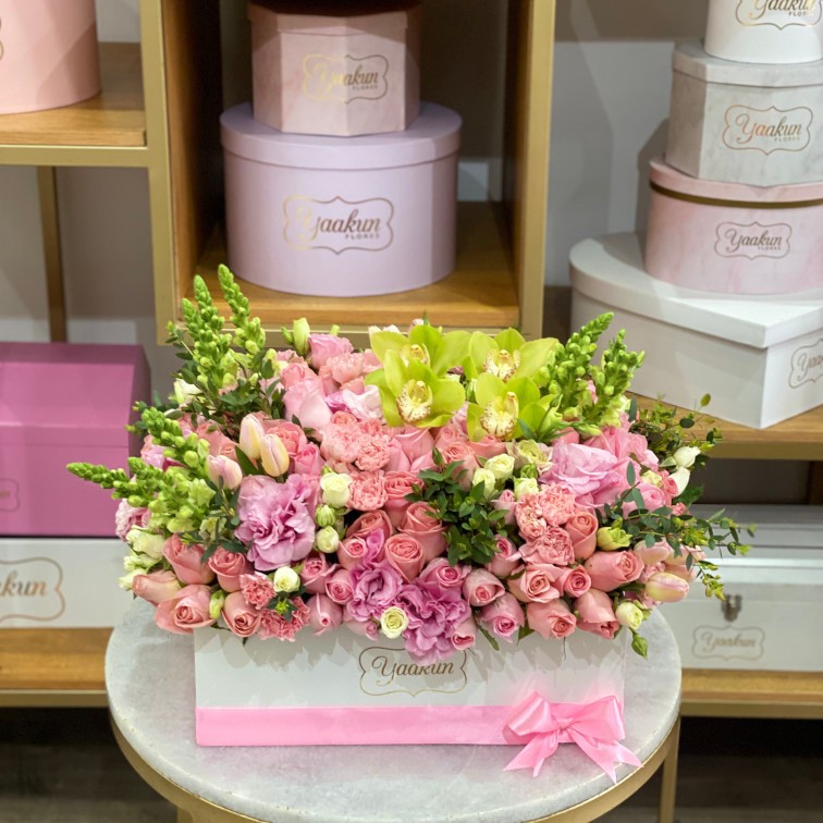Yaakun Flores te ofrece CALIDAD de exportación en cada uno de sus productos, la CANTIDAD puede variar dependiendo del tamaño de la misma; esta es aproximada. La VARIEDAD de flores y follajes pueden variar dependiendo de la temporada y existencia de los mismos, el COLOR cambia un poco dependiendo de la temporada y disponibilidad. En caso de que la flor sea pintada, es más común que el tono cambie, la imagen es de referencia. El VINIL en caso de requerirlo, favor de indicarlo en observaciones de la compra. La ENVOLTURA puede cambiar dependiendo de la existencia. La COBERTURA es gratis en Guadalajara y Zapopan, el costo del envío depende del municipio; esto viene indicado en la sección de cobertura. Tarjeta de dedicatoria esto es opcional.