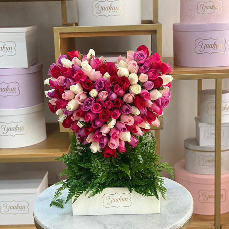 Magnífico arreglo floral en forma de corazón con 100 rosas en tonos pasteles