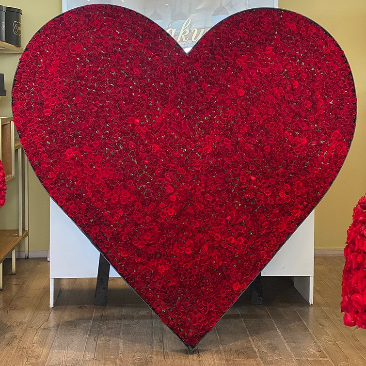 Magnífico diseño de corazón elaborado con 2,500 rosas en color rojo y rosa.
