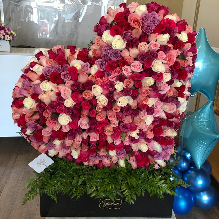 Llamativo corazón elaborado con 400 rosas en tonos pasteles
