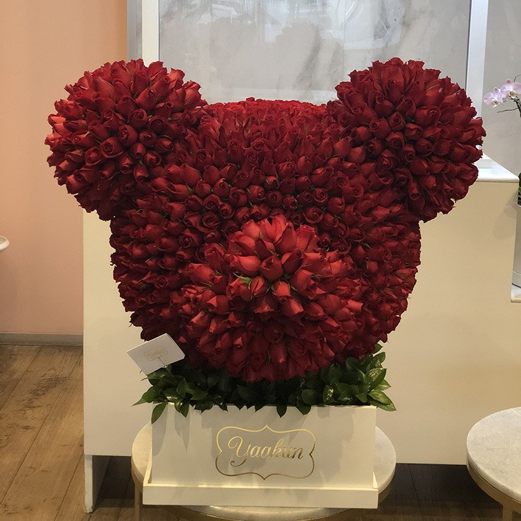 Sorprendente cabeza de Mickey elaborada con 1000 rosas rojas en caja blanca.