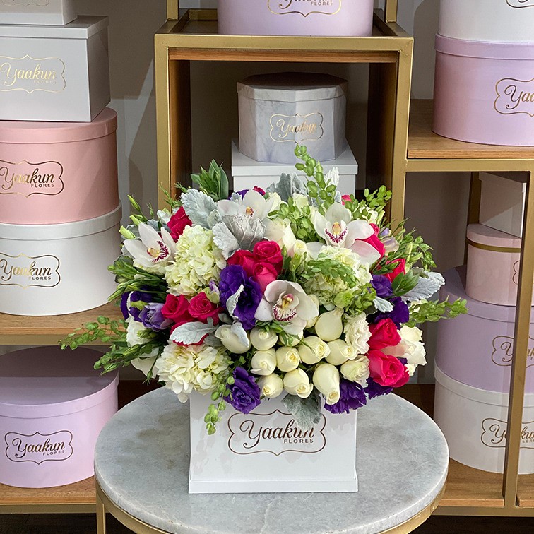 Yaakun Flores te ofrece CALIDAD de exportación en cada uno de sus productos, la CANTIDAD puede variar dependiendo del tamaño de la misma; esta es aproximada. La VARIEDAD de flores y follajes pueden variar dependiendo de la temporada y existencia de los mismos, el COLOR cambia un poco dependiendo de la temporada y disponibilidad. En caso de que la flor sea pintada, es más común que el tono cambie, la imagen es de referencia. El VINIL en caso de requerirlo, favor de indicarlo en observaciones de la compra. La ENVOLTURA puede cambiar dependiendo de la existencia. La COBERTURA es gratis en Guadalajara y Zapopan, el costo del envío depende del municipio; esto viene indicado en la sección de cobertura. Tarjeta de dedicatoria esto es opcional.