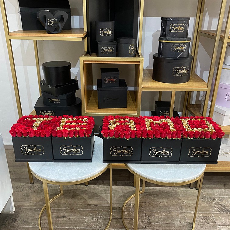 Hermoso y elegante diseño floral con 245 (49 rosas cada caja aproximadamente dividido en 5 cajas con el te amor