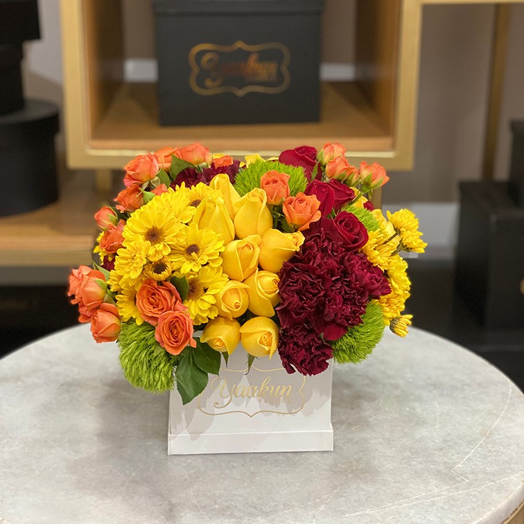 Yaakun Flores te ofrece CALIDAD de exportación en cada uno de sus productos, la CANTIDAD puede variar dependiendo del tamaño de la misma; esta es aproximada. La VARIEDAD de flores y follajes pueden variar dependiendo de la temporada y existencia de los mismos, el COLOR cambia un poco dependiendo de la temporada y disponibilidad. En caso de que la flor sea pintada, es más común que el tono cambie, la imagen es de referencia. El VINIL en caso de requerirlo, favor de indicarlo en observaciones de la compra. La ENVOLTURA puede cambiar dependiendo de la existencia. La COBERTURA es gratis en Guadalajara y Zapopan, el costo del envío depende del municipio; esto viene indicado en la sección de cobertura. Tarjeta de dedicatoria esto es opcional.