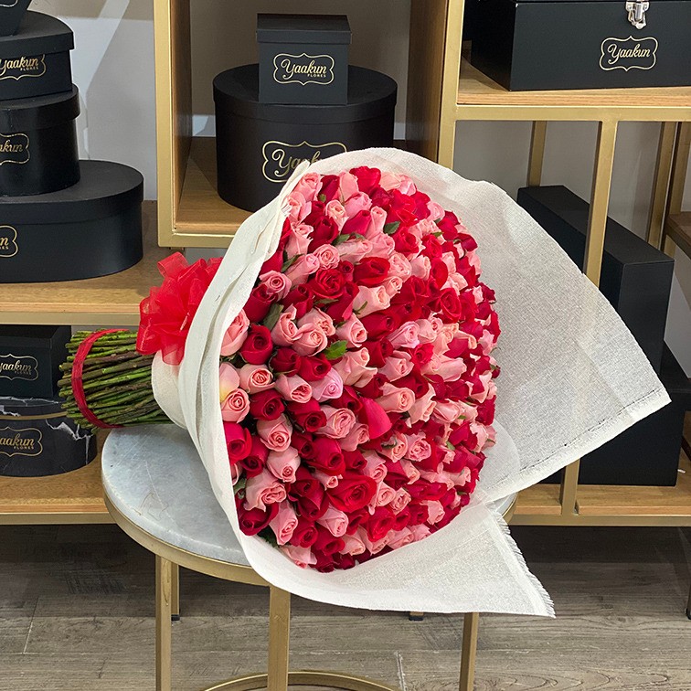 Magnífico ramo de 200 rosas en 2 hermosos tonos, rojo y rosa.