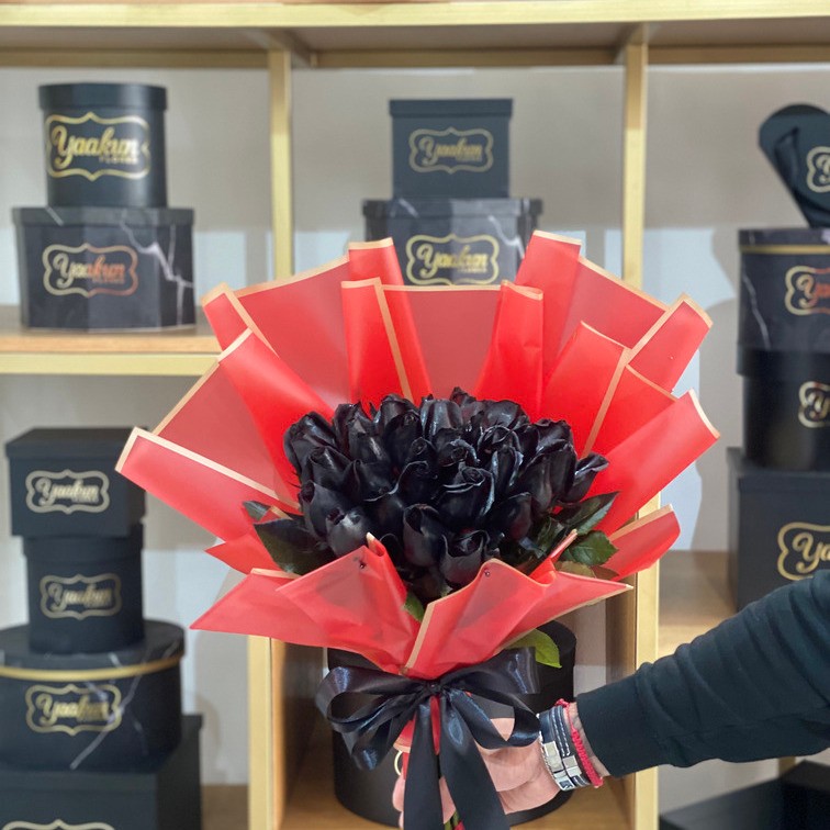 Hermoso bouquet con 36 rosas negras y papel coreanos
