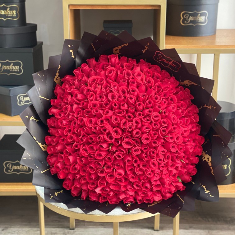 El amor es un compromiso diario. Demuéstralo con este precioso ramo de 365 rosas rojas calidad de exportación con yute y moño de organza, una rosa para cada día del año.