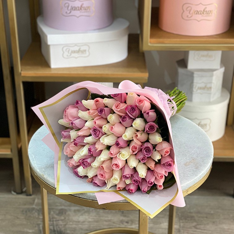 Hermoso ramo de 75 rosas calidad de exportación en 3 tonos pastel.