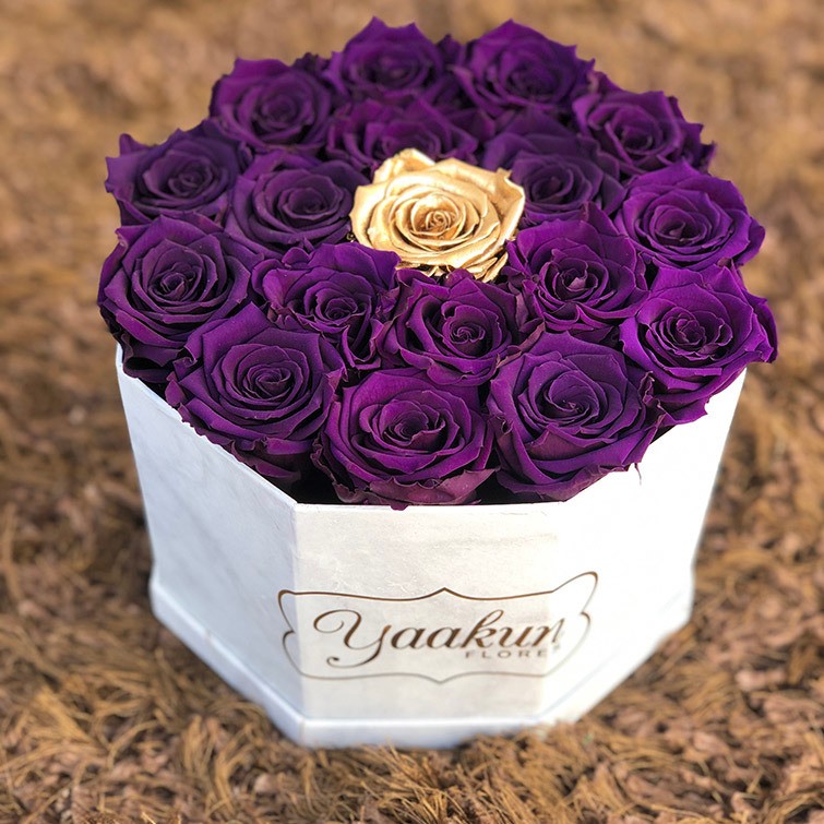 Hermoso diseño con aproximadamente 17 rosas preservadas en tonos rojos y dorados en caja exagonal marmolada blanca. Las rosas preservadas pueden durar hasta 3 años dependiendo los cuidados y las condiciones climatológicas de cada ciudad.