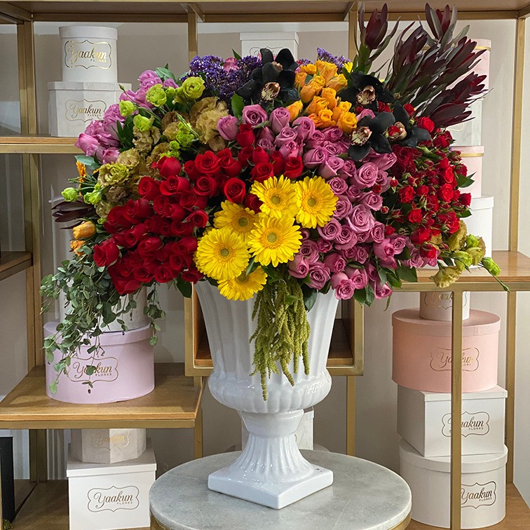 Hermoso arreglo floral con 150 rosas, roxanas y orquideas