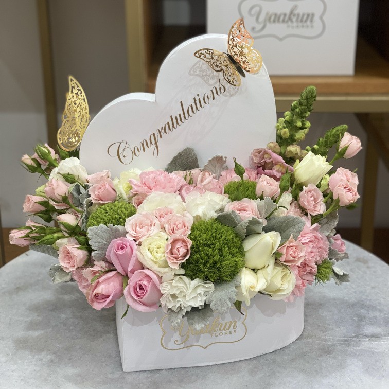 Hermoso arreglo floral con 36 rosas rojas y contorno de gypso en papel coreano