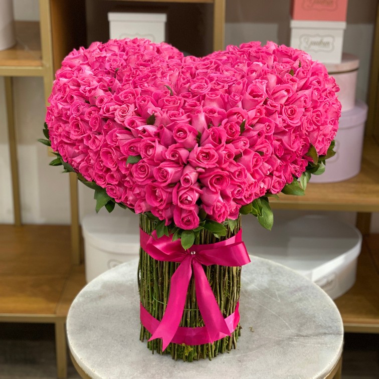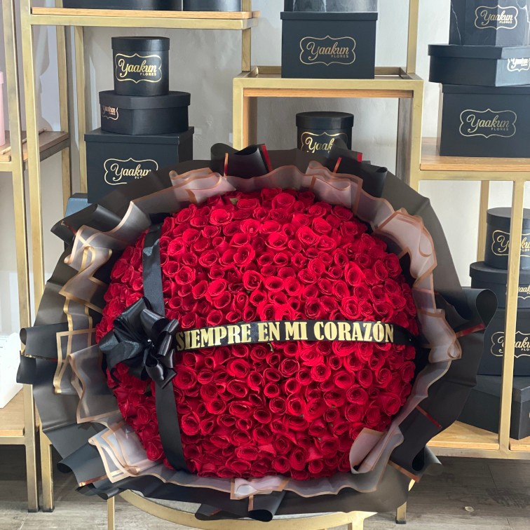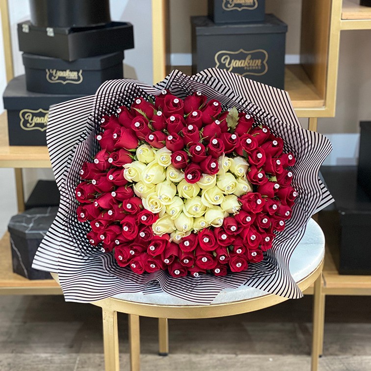 Hermoso arreglo floral en forma de corazón con 300 rosas blancas y papel coreano