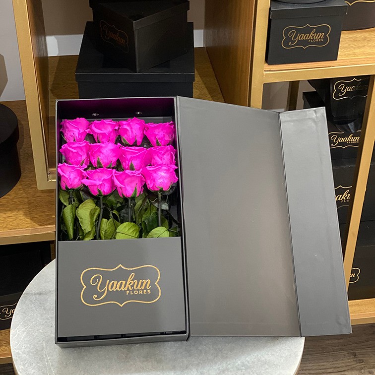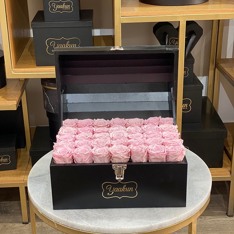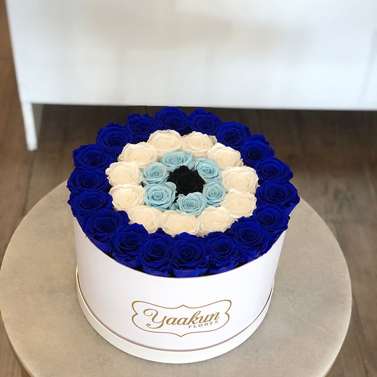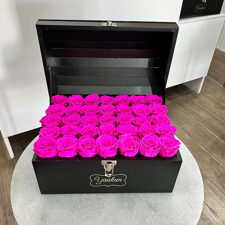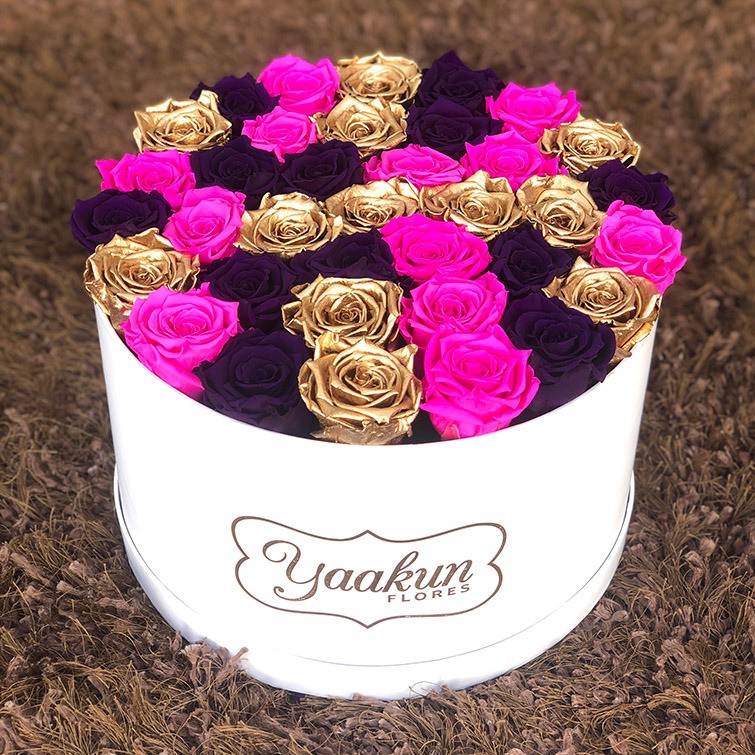 Hermoso arreglo floral con 32 rosas eternas aproximadamente