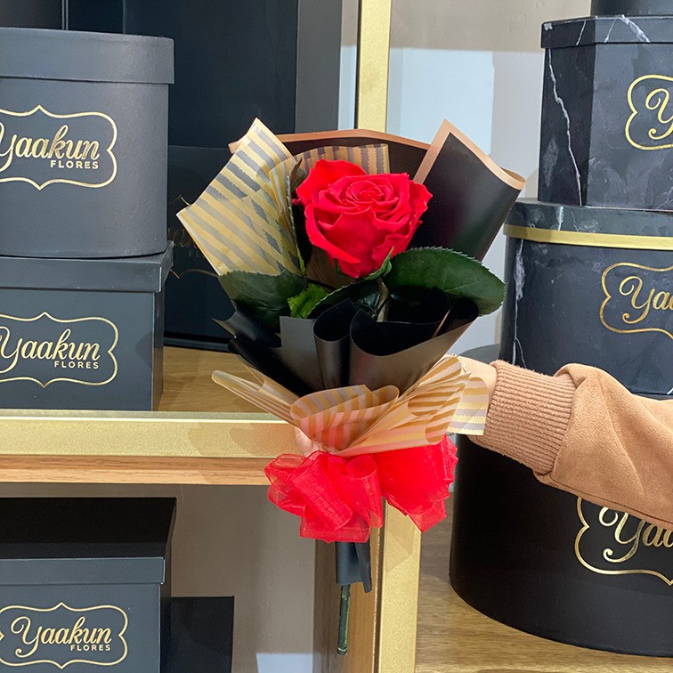 Hermoso y elegante diseño floral con 40 rosas eternas en color rojo