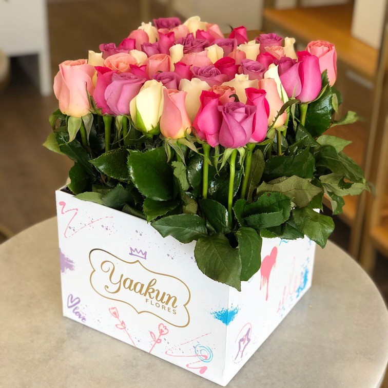 Caja edición especial pintada a mano con 49 rosas en distintos tonos