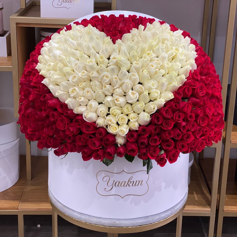 Espectacular diseño con 500 rosas rojas y detalle en rosas blancas de corazón, su tapa inclinada aparenta estar semi-abierto. Detalles para sorprender.
