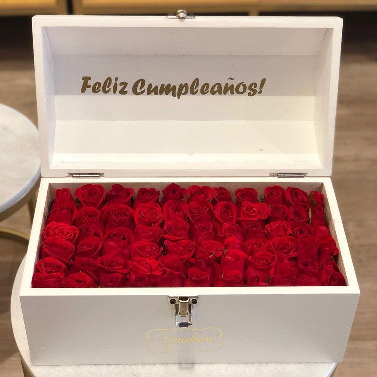 Envía tus mejores deseos con este cofre clásico y elegante con 70 hermosas rosas rojas de exportación aproximadamente. Sin duda un regalo inolvidable.