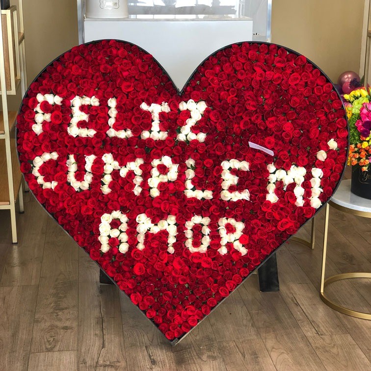 Espectacular corazón elaborado con 1000 rosas rojas calidad de exportación.