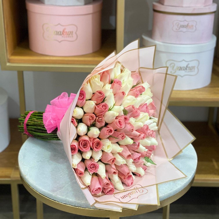 Precioso ramo de 100 rosas en dos tonalidades pastel.
