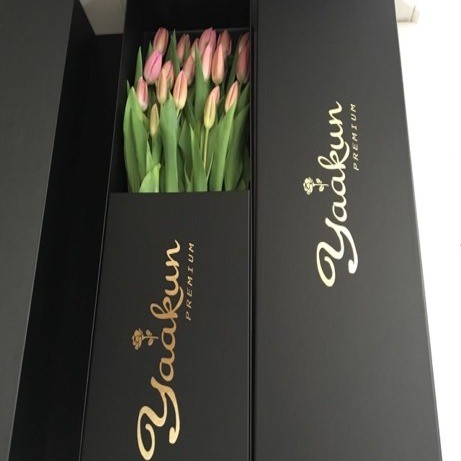 El regalo perfecto para ganarte su corazón. Esta elegante caja en color negro contiene en su interior 20 hermosos tulipanes de exportación.