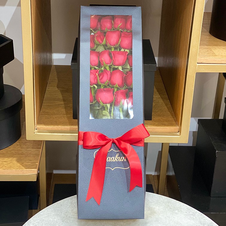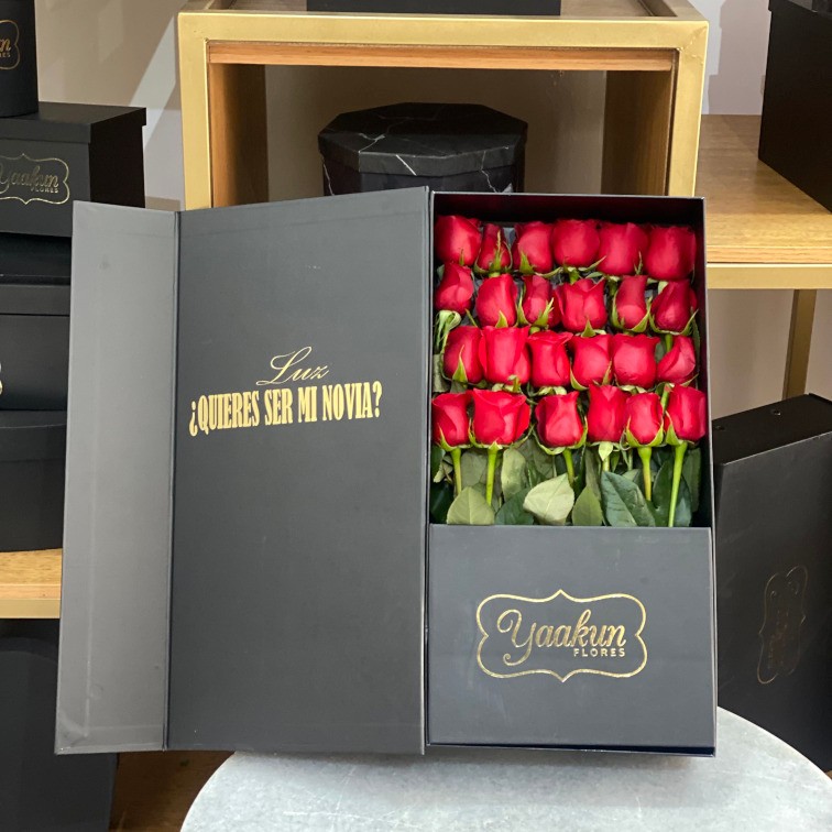 Sofisticada caja Premium con 24 rosas rojas de máxima calidad.