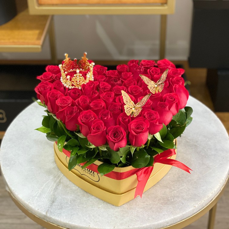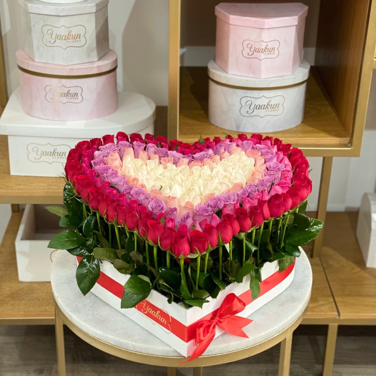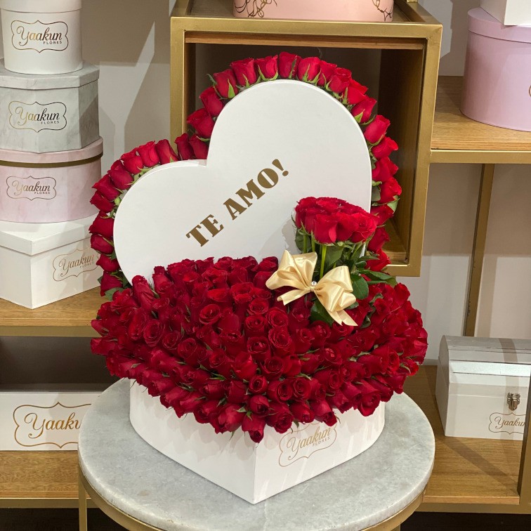 Hermoso y sofisticado arreglo floral en forma de corazón tipo bouquet con 300 rosas rojas