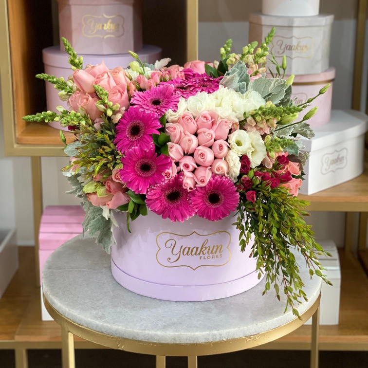 Hermoso diseño floral con geberas, 100 rosas, lisianthus, baby rose y follaje fino.