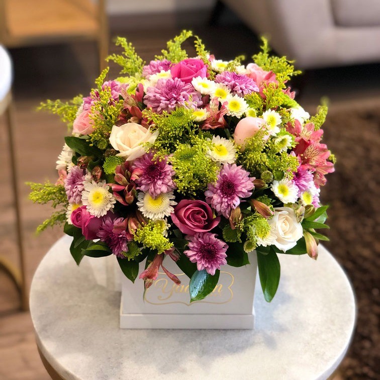 Hermoso diseño floral con 200 rosas, tulipanes, girasoles y follajes finos.