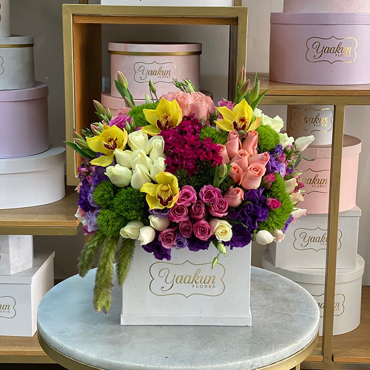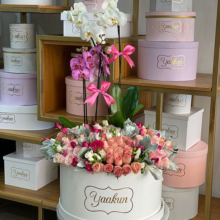 Diseño floral con varias tonalidades , 50 rosas , orqideas , clavellinas , green ,tulipanes y lisianthus